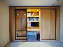 Au lieu de retirer momentanément ses affaires, le temps de l’occupation de la pièce, Hic et Ubiq, permet de laisser l’espace nécessaire au futur invité pour s’y installer tout en préservant les affaires initialement rangées. On pourra même, si on le souhaite, ne pas rendre accessible certaines faces du meuble grâce à un verrou , figeant la colonne..